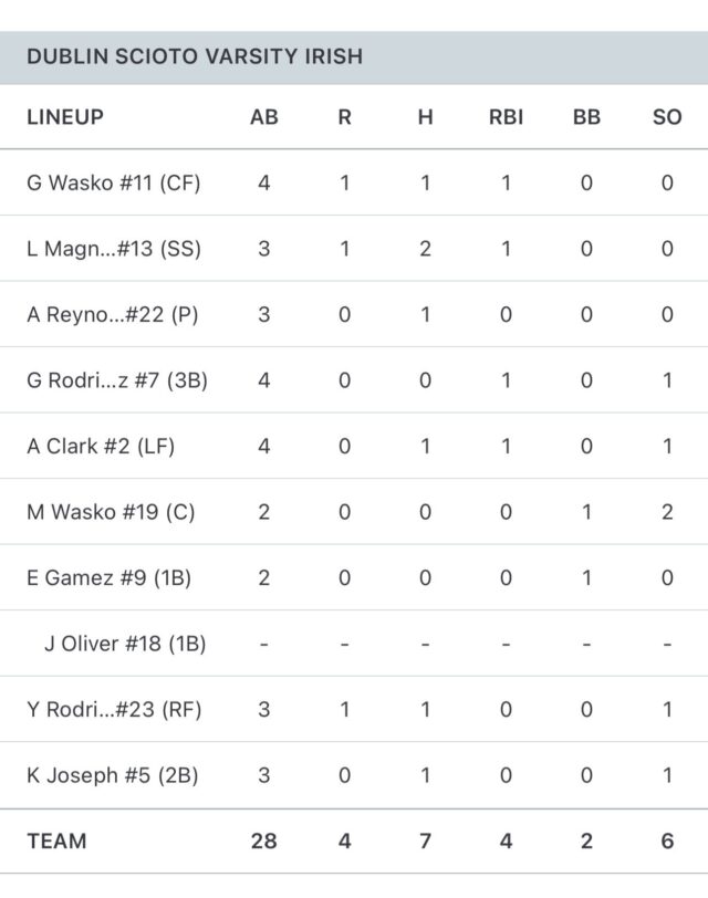 Scioto answered, refusing to let the game slip away without a fight. Lyla Magnussen led the charge with two hits on the night, while Gina Wasko, Magnussen, Abbi Clark, and Gigi Rodriguez each drove in runs to keep the Irish within striking distance.