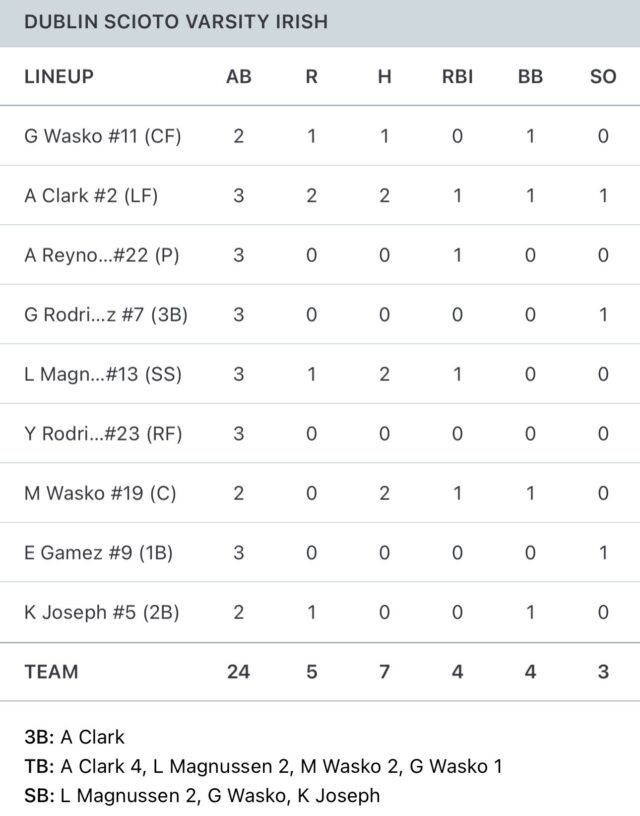 Abbi Clark sparked the Irish offense with a triple to right center, bringing home the first run of the night and igniting the crowd. Moments later, Reynolds helped her own cause with a groundout that plated another, giving Scioto a lead that immediately felt significant given how the game had unfolded.